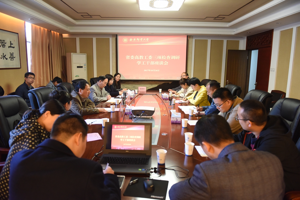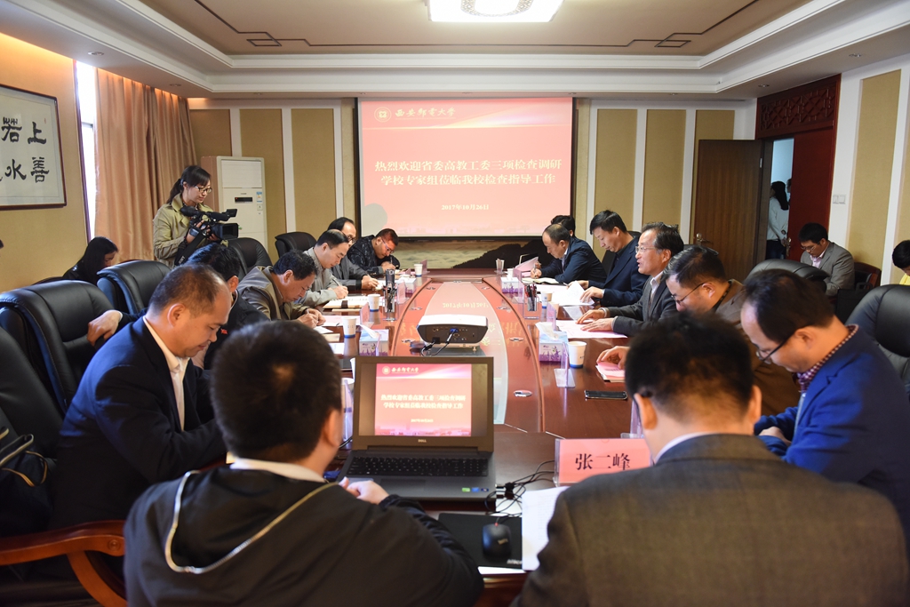 本网讯 按照《中共陕西省委高教工委办公室关于对部分高校辅导员队伍建设、学生心理健康教育和共青团工作进行检查调研的通知》精神与要求,10月26日上午,省委高教工委组织专家组来威尼斯检查调研“三项工作”。专家组由西安翻译学院党委书记李虎成担任组长,省委高教工委学工部部长田民正、西安外国语大学学工部部长郑锐华、西安石油大学心理研究所所长郑林科、西安建筑科技大学团委书记陈向阳、省委高教工委联络员张钦峰共6人组成。校党委书记崔智林出席汇报会并致辞。相关部门负责人、学院和辅导员代表参加了汇报会,副校长安增旺主持汇报会。
