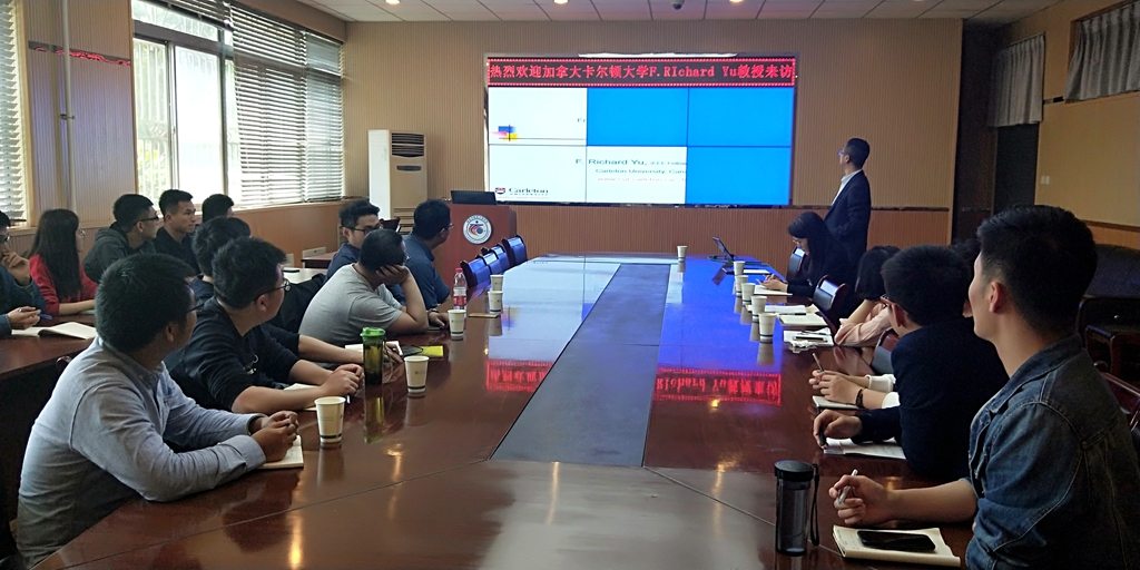 本网讯 (通讯员 徐鹏)4月23日,应陕西省信息通信网络及安全重点实验室的邀请,加拿大卡尔顿大学于非教授在通信与信息工程学院会议室为学院师生做了题为From the Internet of Information to the Internet of Intelligence(《从信息互联网到智能互联网的演变》)的学术报告。通信工程学院副院长姜静教授主持报告会。