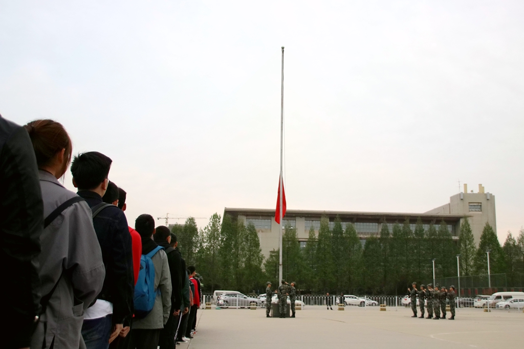 仪式在庄严肃穆的气氛中进行。迎着朝阳,国旗护卫队队员迈着铿锵有力的步伐护送国旗走向国旗台。升国旗,奏国歌,雄壮的国歌声响彻校园,五星红旗缓缓升起。随后,通信与信息工程学院电科1801学生代表杨乐进行了题为《缅怀先烈 致敬英雄》的演讲,她向同学们发出倡议:少年智则国智,少年强则国强。让我们从自身做起,从现在做起,不负青春年华,开拓进取,努力学习,以优异的成绩告慰烈士英灵,为祖国建设贡献自己的智慧和力量!