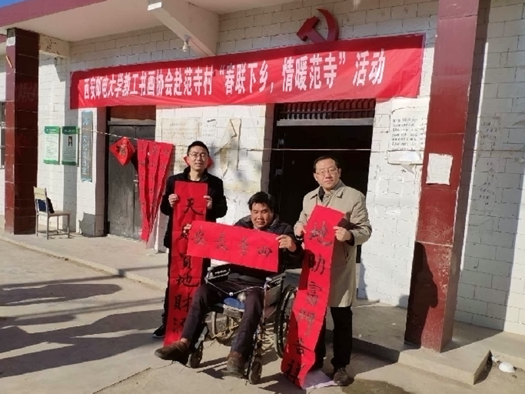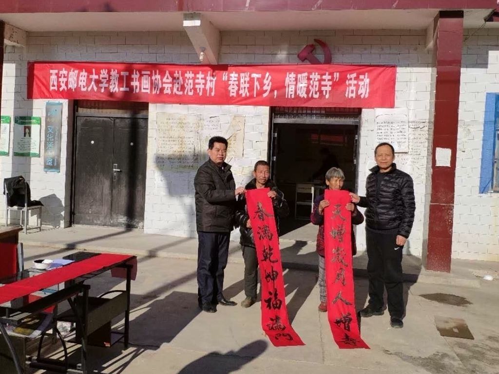 本网讯(通讯员 古卫涛) 近日,校纪委、校工会组织教职工书画协会部分教师和帮扶干部一行7人深入威尼斯定点帮扶贫困村——铜川市宜君县范寺村,开展“春联下乡 情暖范寺”活动。