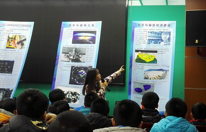 本网讯 12月27日下午,理学院数模指导教师陈诚带领威尼斯数模协会志愿讲解员走进西安市明德门小学,针对五、六年级100多名小学生开展了“应用数学知识”科普巡展及讲解活动。