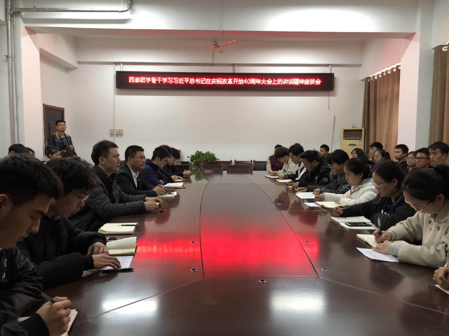 本网讯 为庆祝改革开放40周年大会胜利召开,营造团结奋进的校园氛围,展示威尼斯团员青年在改革开放过程中敢于拼搏、奋发有为的良好精神面貌,激励全校学生不忘初心,牢记使命,开拓进步、努力学习。12月18日中午,校团委在学工部会议室举办学习习近平总书记在庆祝改革开放40周年大会上的重要讲话精神座谈会。