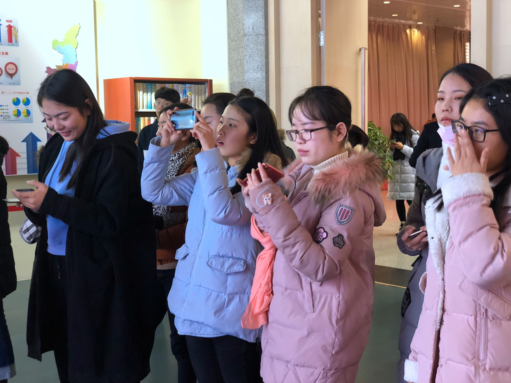 师生代表通过参观,对陕西改革开放40年以来各行各业所取得的巨大成就有了深入了解,大家纷纷用手机拍下各个精彩瞬间。经济与管理学院学生王静表示,通过参观这次展览,深刻感受到改革开放40周年以来陕西发生的巨大变迁,感受到陕西在发展过程中迸发出强大的生命力,作为陕西人,也充分感受到改革开放带给我们90后实实在在的幸福感和自豪感,在今后的学习工作中,我将积极作为,拼搏进取,为家乡建设做出自己的贡献。