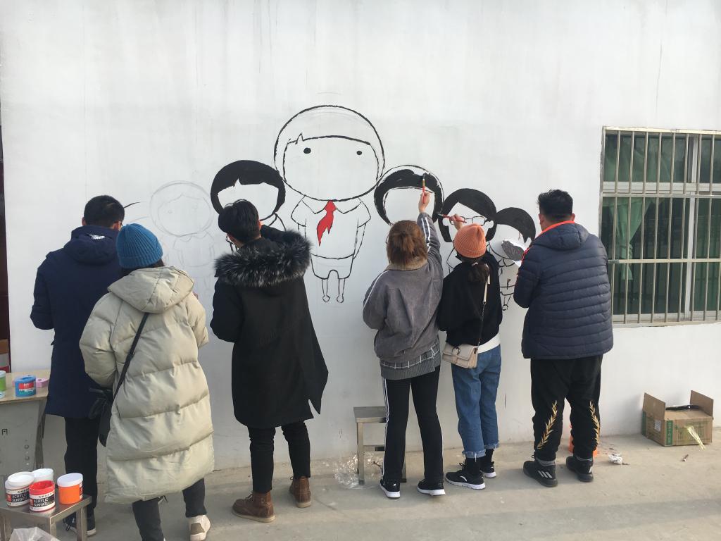 威尼斯数字艺术学院的6名学生在零下5度的操场上,为宜君县雷塬中心小学设计、美化文化墙,同学们不畏严寒,拿着手中的画笔,用了四个小时时间,为雷塬中心小学创作出一副青春、积极、正能量的宣传壁画,深受师生喜欢。