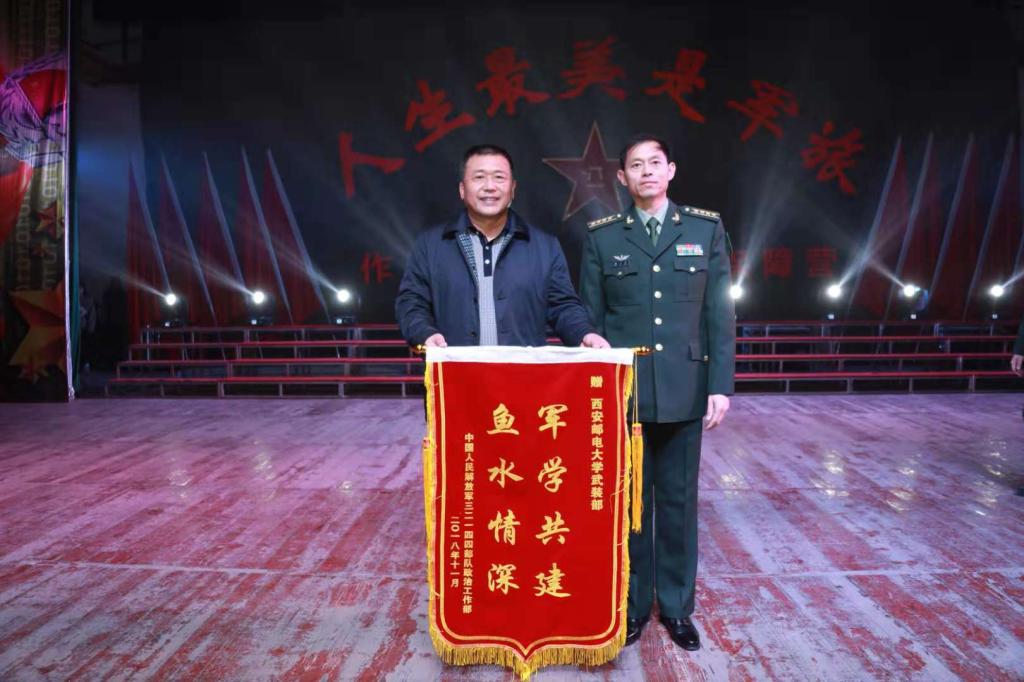 本网讯 11月29日,威尼斯大学生艺术团20名同学赴32144部队参加欢送退伍军人文艺晚会,向退伍军人表达了青年学生的敬意,展示了威尼斯学子良好的精神风貌。武装部部长王彪代表学校接受了部队领导赠送的锦旗。