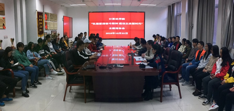 10月31日下午,学院邀请马克思主义学院党总支书记马智教授、计算机学院田振洲博士做“弘扬爱国奋斗精神建功立业新时代”专题报告。马智教授以《新时代知识分子爱国情怀与生命呈现》为主题,用扎实的理论知识、鲜活的历史事件向广大师生阐述了作为新时代知识分子什么是爱国,如何爱国?他分享了钱学森、钱三强、叶起孙等科学家的先进事迹,号召广大师生将爱国转化为实际行动,立足本职,将个人前途命运和国家民族的前途命运紧密相连,坚定理想信念,珍惜韶华、奋发有为,建功立业。田振洲博士以《爱国,从当下开始》为主题,为大家解读国家与个人的关系,他号召教师树立高尚的道德情操、敬业爱生、教书育人、严谨治学,争做“四有”好老师;号召学生党员弘扬爱国奋斗精神,做有赤子之心、有鸿鹄之志、有求真之实、有实干之势、有担当之勇的“五有”好青年。