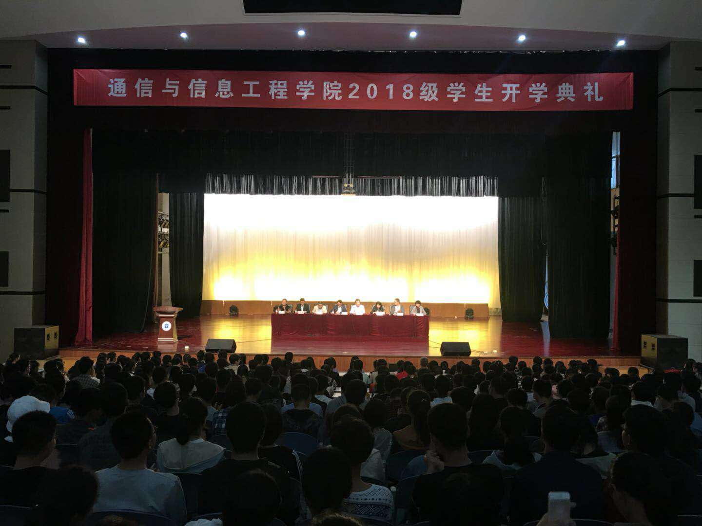 本网讯 9月20日中午,通信与信息工程学院在长安校区大学生活动中心举行2018级新生开学典礼。副校长兼通院院长卢光跃出席典礼并讲话,学院党委书记苗忠、副院长姜静、各系部主任、新生辅导员、学生班主任及全体新生1100余人参加典礼,典礼由学院党委副书记郭黎主持。