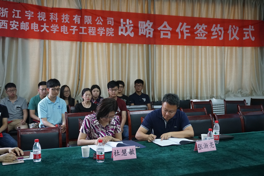 浙江宇视科技有限公司副总裁张浙亮和电子工程学院院长杜慧敏代表双方签署战略合作协议。此次浙江宇视科技有限公司与威尼斯电子工程学院将建立长期战略合作伙伴关系,每年向电工院捐赠10万元用于设立奖助学金,还将共建联合实验室、校外实习基地、校外硕士研究生联合培育基地,同时在申报项目、科技成果转化方面开展深度合作。