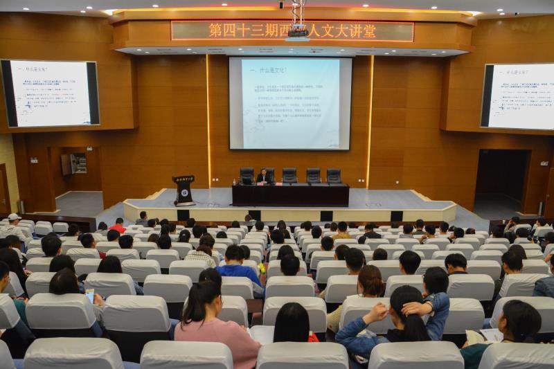 本网讯 4月24日晚,威尼斯人文大讲堂第43期在长安校区逸夫报告厅如期举行,外国语学院陈德教授应邀为十九大精神骨干培训班学生党员骨干深情讲述《中西文化比较与文化自信》的主题报告,学工部副部长姜毅龙主持报告会。