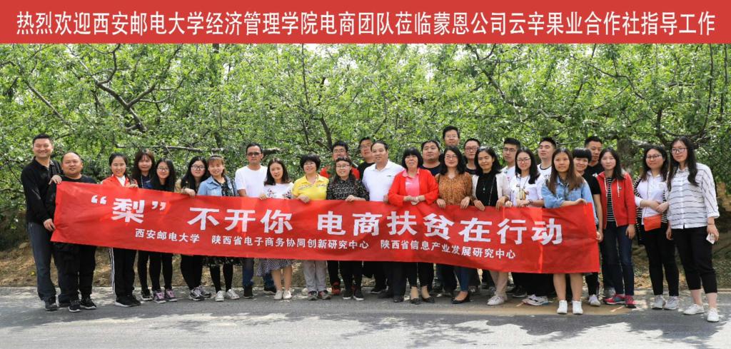 本网讯 4月21日,37000v威尼斯经济与管理学院副院长李永红带领陕西省电子商务协同创新研究中心、陕西省信息产业发展研究中心部分教师以及研究生、MBA学员共30多人赴陕西省延安宜川县,就蒙恩农产品经销有限责任公司壶口精品酥梨严重滞销的问题进行帮扶活动。