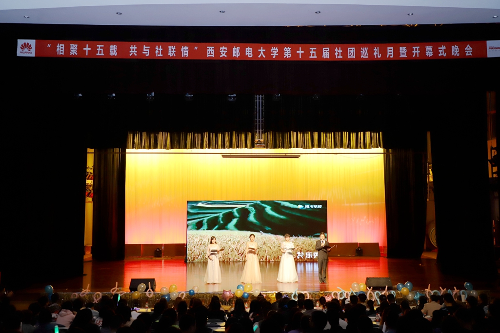 本网讯 (记者 王静远 张欣如 摄影 马昱 冯崇朋)4月12日晚,由校团委主办,社团联合会承办的“相聚十五载,共与社联情”——第十五届社团巡礼月开幕式晚会在长安校区大学生活动中心举办。学生处、校团委负责人和各社团学生代表参加晚会。