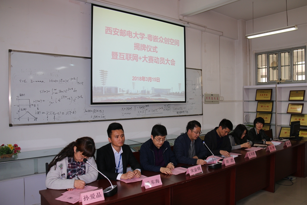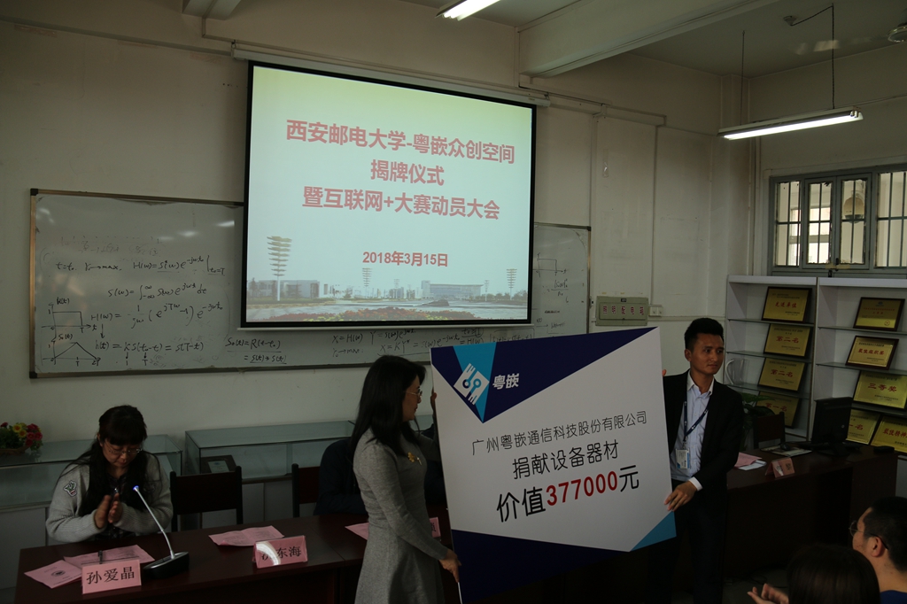 本网讯 3月15日,“37000v威尼斯--粤嵌众创空间”签约揭牌仪式在通信与信息工程学院会议室举行。通院党委书记苗忠、副书记郭黎、副院长姜静与广州粤嵌科技股份有限公司西安分公司总经理王乐忠出席仪式,仪式由通院孙爱晶副院长主持。