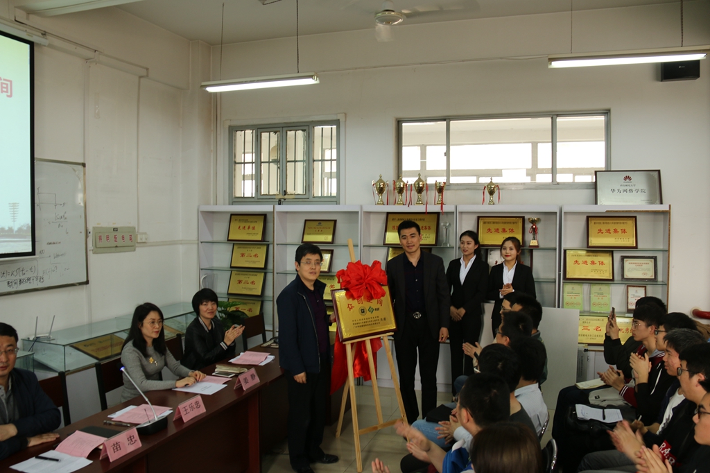 姜静与王乐忠签订合作协议,教务处副处长宋金锁与王乐忠共同为“众创空间”揭牌;姜静代表学院接受了粤嵌公司赠送的仪器设备。