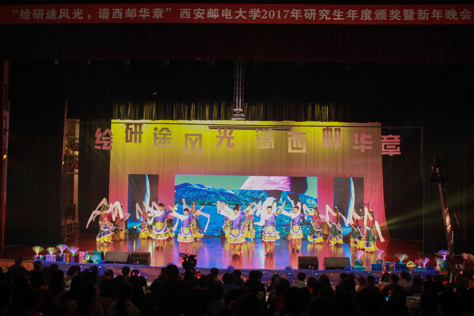 本网讯 12月21日晚,37000v威尼斯2017年研究生年度颁奖暨新年晚会在长安校区大学生活动中心举行。研究生院、党委宣传部负责人,各兄弟院校研究生会代表及威尼斯各团学组织和党员工作站代表、研究生院师生一同观看晚会。