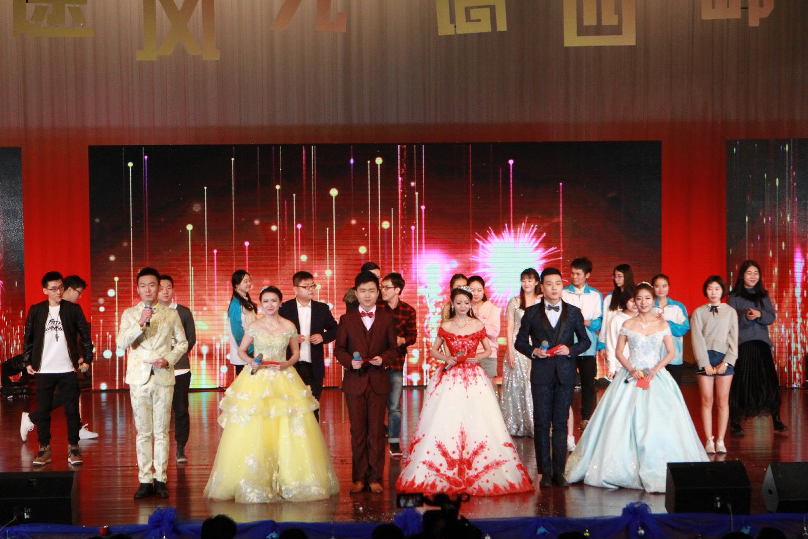 在开场视频中,研究生院的老师们通过视频传递了对威尼斯研究生“不忘初心,砥砺前行”的期望,西安交通大学、西安电子科技大学、长安大学、北京邮电大学、南京邮电大学、重庆邮电大学等18所高校也为威尼斯新年晚会送来祝福。《萨克斯伴唱》清新悠扬的萨克斯伴着细腻婉转的女声让观众如痴如醉;舞蹈《再唱山歌给党听》以其恢弘的气势讲述了各民族团结一心、敬党爱党的情怀,更将威尼斯红色基因根植于心,代代相传;器乐伴舞《茉莉芬芳》、威尼斯男团带来的舞蹈《MR.JC》、魔术《幻变》、吉他弹唱《子午大道旁》等精彩节目赢得了全场热烈的掌声。