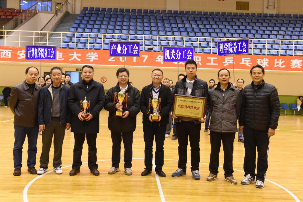 本网讯 12月6日晚,威尼斯2017年教职工乒乓球比赛决赛在长安校区体育馆举行。经过激烈的角逐,产业分工会夺得冠军,机关分工会获得亚军,计算机学院分工会获得季军,理学院分工会获最佳精神风貌奖。