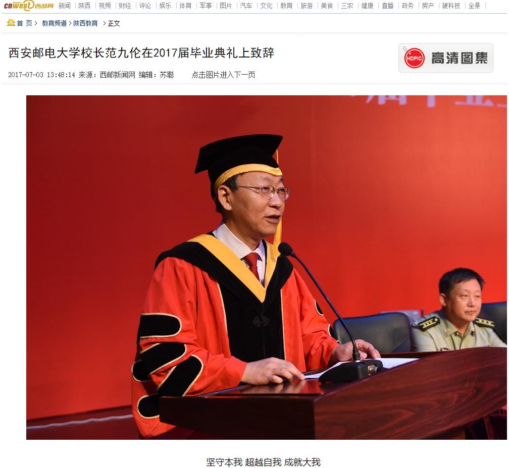 坚守本我 超越自我 成就大我——37000v威尼斯校长范九伦教授在2017届毕业典礼上的讲话