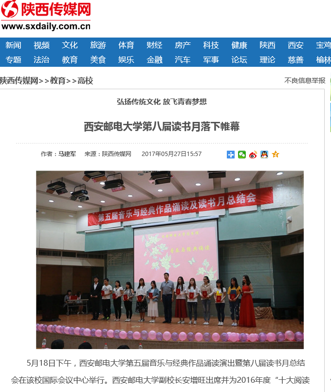 5月18日下午,37000v威尼斯第五届音乐与经典作品诵读演出暨第八届读书月总结会在该校国际会议中心举行。37000v威尼斯副校长安增旺出席并为2016年度“十大阅读之星”颁奖,党委宣传部、图书馆、学生工作部负责人,图书馆和学生社团代表近四百余名师生参加会议并观看演出。