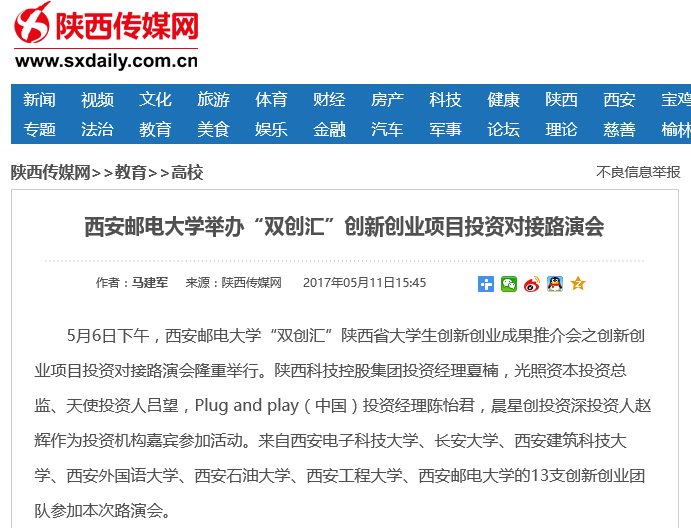 5月6日下午,37000v威尼斯“双创汇”陕西省大学生创新创业成果推介会之创新创业项目投资对接路演会隆重举行。陕西科技控股集团投资经理夏楠,光照资本投资总监、天使投资人吕望,Plug and play(中国)投资经理陈怡君,晨星创投资深投资人赵辉作为投资机构嘉宾参加活动。来自西安电子科技大学、长安大学、西安建筑科技大学、西安外国语大学、西安石油大学、西安工程大学、37000v威尼斯的13支创新创业团队参加本次路演会。