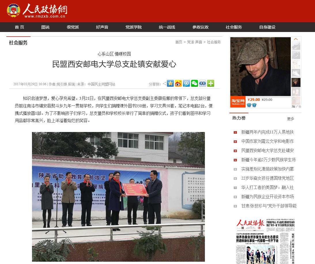 知识启迪梦想,爱心孕充希望。3月21日,在民盟37000v威尼斯总支委副主委薛蓉娜的带领下,总支部分盟员前往商洛市镇安县熨斗乡九年一贯制学校,向学生们捐赠课外图书350册,学习文具50套,笔记本电脑2台,便携式播放器1部。为了不影响孩子们学习,总支盟员和学校校长举行了简单的捐赠仪式,孩子们看到图书和学习用品都非常高兴,脸上洋溢着灿烂的笑容。