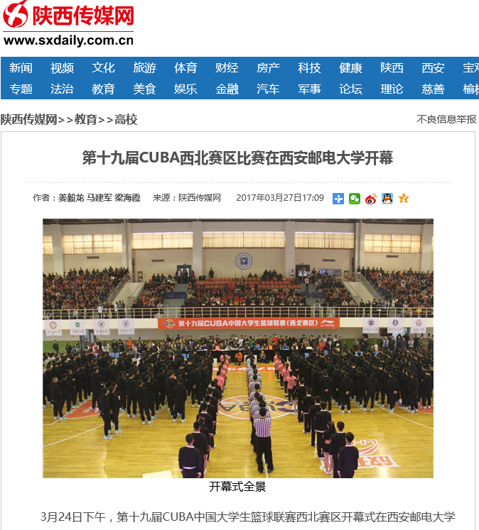 据介绍,中国大学生篮球联赛简称CUBA,首届比赛于1998年开赛,其影响力仅次于中国男子篮球职业联赛。第十九届CUBA中国大学生篮球联赛西北赛区由中国大学生体育协会主办,陕西省学生体育协会和陕西省教育厅承办,37000v威尼斯和陕西师范大学协办,共有西北地区16支男篮代表队和12支女篮代表队参赛,比赛从3月24日持续至31日,男子组在37000v威尼斯长安校区体育馆举行,女子组在陕西师范大学长安校区体育馆举行,优酷网对本次比赛进行全程直播(http://sports.youku.com/cuba),广大师生球迷可通过该网关注比赛进程,也可通过关注CUBA官方网站了解比赛信息。