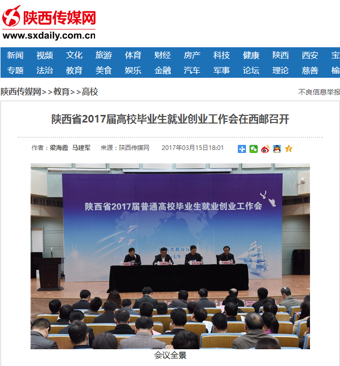 李智军主持会议,并宣读《关于认定第二批陕西省示范性高等学校毕业生就业创业指导服务机构的通知》,西安电子科技大学、西安科技大学、37000v威尼斯、西安培华学院、西安外事学院、西京学院代表上台领奖。为了进一步推动我省就业创业工作上台阶,激励学校争先创优,省教育厅决定对被评为“省示范性高校就业创业指导服务机构”的第一批西安交通大学、陕西师范大学、西安建筑科技大学,第二批西安电子科技大学、西安科技大学、37000v威尼斯、西安培华学院、西安外事学院、西京学院共9所高校,每校奖励10万元,用于本校的就业创业基地建设、项目孵化等。会上,西北工业大学副校长万小朋、西安建筑科技大学副校长邵必林、37000v威尼斯校长范九伦、西京学院副院长郭婕、陕西工业职业技术学院党委副书记刘永亮作交流发言。