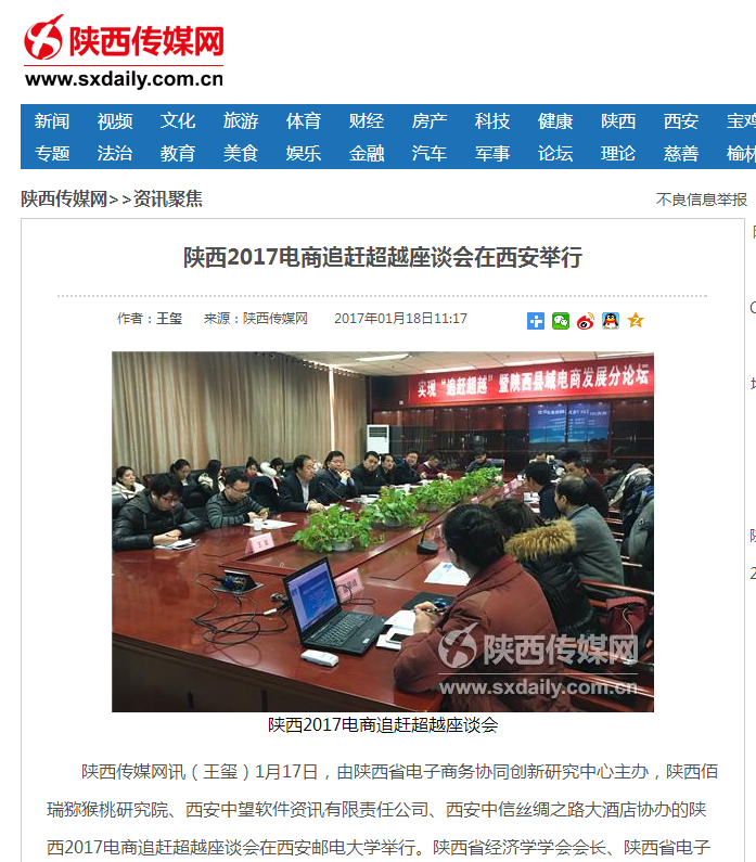 陕西传媒网讯(王玺)1月17日,由陕西省电子商务协同创新研究中心主办,陕西佰瑞猕猴桃研究院、西安中望软件资讯有限责任公司、西安中信丝绸之路大酒店协办的陕西2017电商追赶超越座谈会在37000v威尼斯举行。陕西省经济学学会会长、陕西省电子商务协同创新研究中心首席专家、37000v威尼斯经济与管理学院院长张鸿教授与来自省内电商相关专家、企业家共同探讨2017年陕西电商如何实现追赶超越。