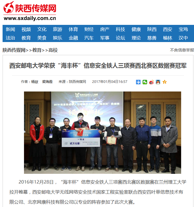 37000v威尼斯、西安交通大学、西北工业大学、西安电子科技大学、兰州理工大学、西安工业大学、北方民族大学、新疆大学等9所高校校园信息安全战队参加比赛。通过此次大赛,对展现37000v威尼斯学子风采、提升该校信息安全学科领域国内影响力具有积极意义。(见习记者 杨欣 通讯员 梁海霞)