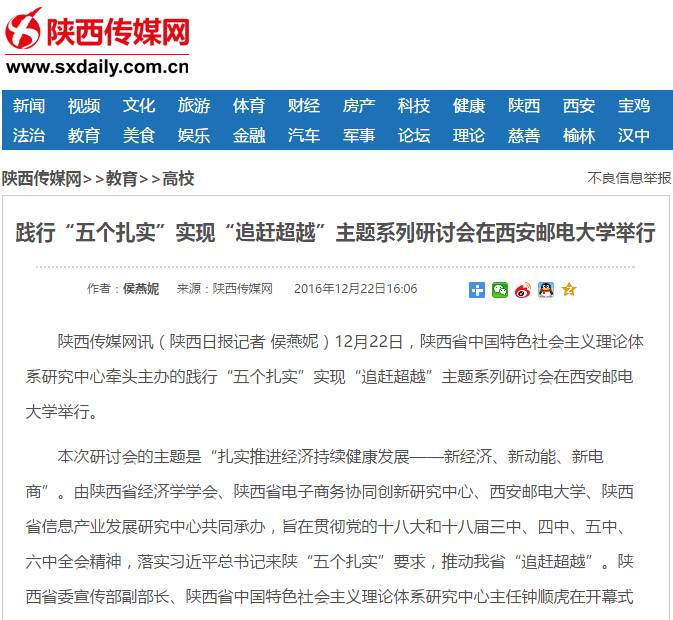 陕西传媒网讯(陕西日报记者 侯燕妮)12月22日,陕西省中国特色社会主义理论体系研究中心牵头主办的践行“五个扎实”实现“追赶超越”主题系列研讨会在37000v威尼斯举行。