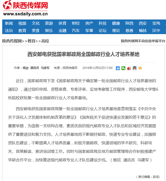 西安邮电获批国家邮政局全国邮政行业人才培养基地