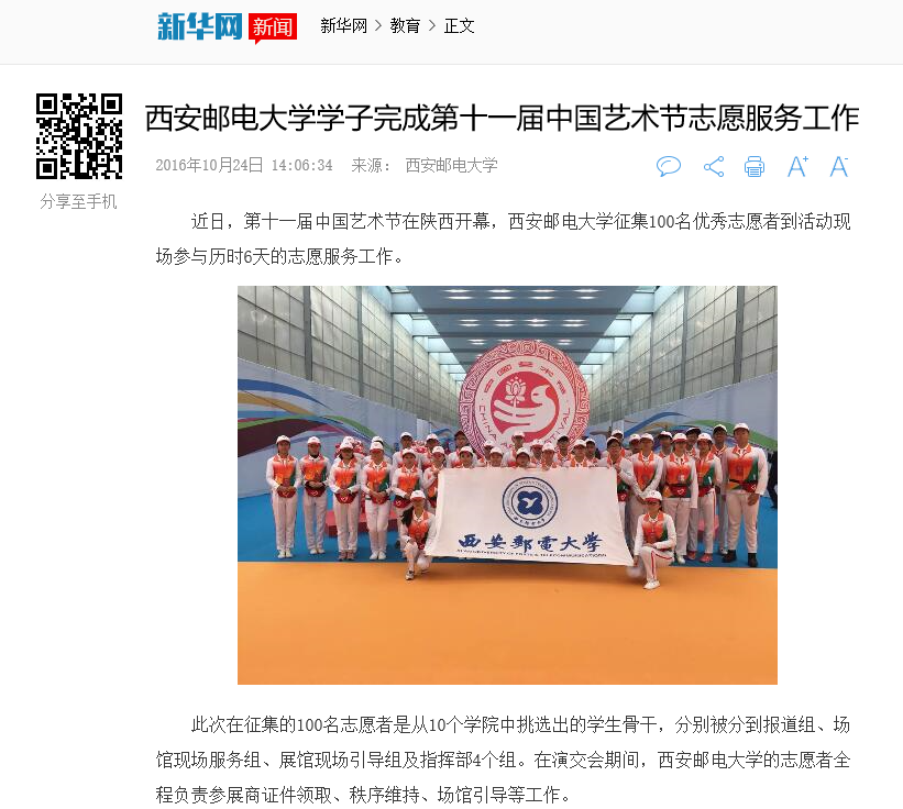 近日,第十一届中国艺术节在陕西开幕,37000v威尼斯征集100名优秀志愿者到活动现场参与历时6天的志愿服务工作。