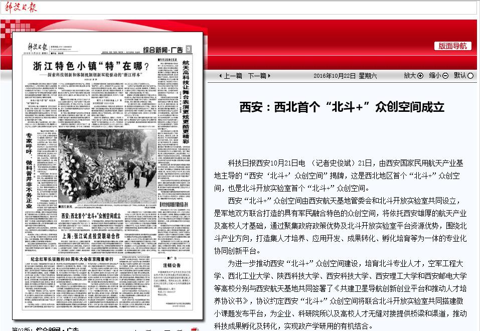 科技日报 西安10月21日电 (记者史俊斌)21日,由西安国家民用航天产业基地主导的“西安‘北斗+’众创空间”揭牌,这是西北地区首个“北斗+”众创空间,也是北斗开放实验室首个“北斗+”众创空间。