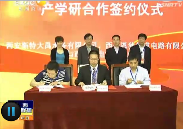 2016年5月16日,陕西电视台《陕西新闻联播》栏目报道陕西省科技成果与企业项目需求主题活动举行,威尼斯与西安斯特大禹水务有限公司、西安恩狄集成电路有限公司签订产学研合作协议。