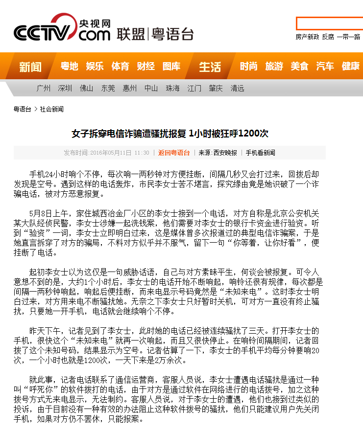 手机24小时响个不停,每次响一两秒钟对方便挂断,间隔几秒又会打过来,回拨后却发现是空号。遇到这样的电话轰炸,市民李女士苦不堪言,探究缘由竟是她识破了一个诈骗电话,被对方恶意报复。
