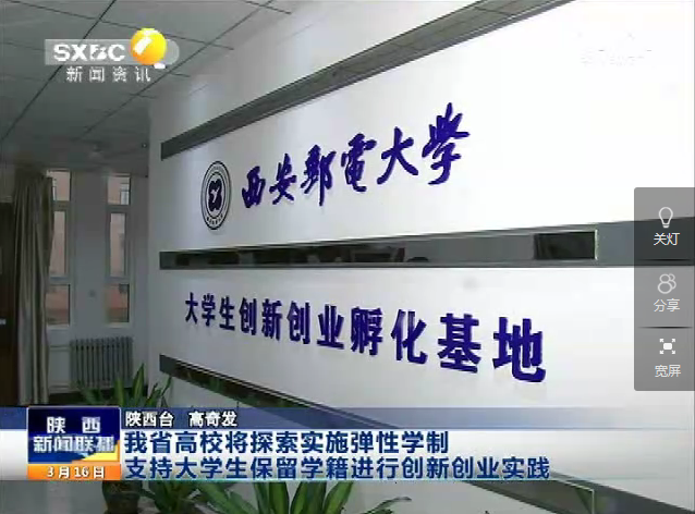 2016年3月17日,陕西电视台《陕西新闻联播》报道威尼斯大学生创新创业孵化基地。