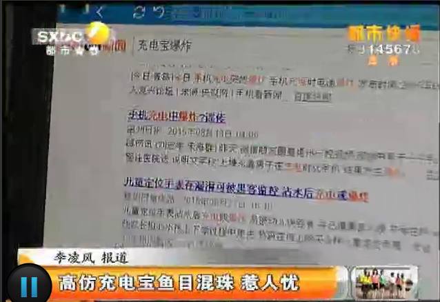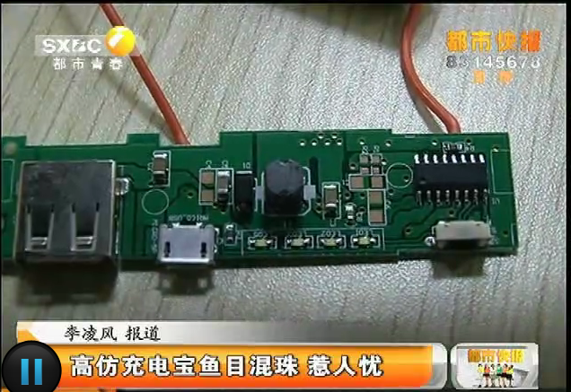 2015年9月4日,陕西电视台《都市快报》栏目报道高仿充电宝鱼目混杂 惹人忧。