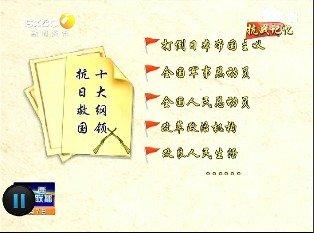 2015年8月7日,陕西电视台《陕西新闻联播》报道洛川会议:为全国抗战制定了正确路线和战略总方针。