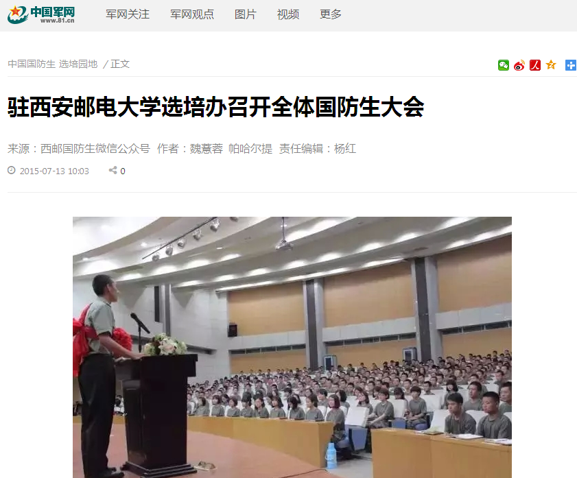 7月9日晚7点,2014—2015学年第二学期37000v威尼斯全体国防生大会在学校国际会议中心召开,驻37000v威尼斯选培办主任庞利民,干事刘潇、穆铮辉参加会议。