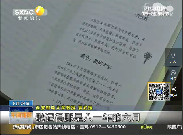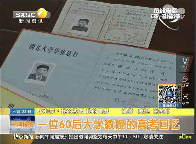 2015年6月24日 陕西电视台《第一新闻午间播报》:一位60后大学教授的高考回忆