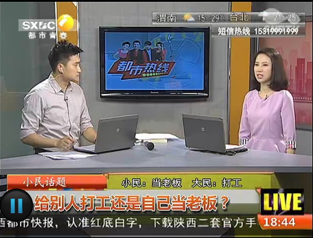 2015年4月26日,陕西电视台《都市热线》报道给别人打工还是自己当老板。