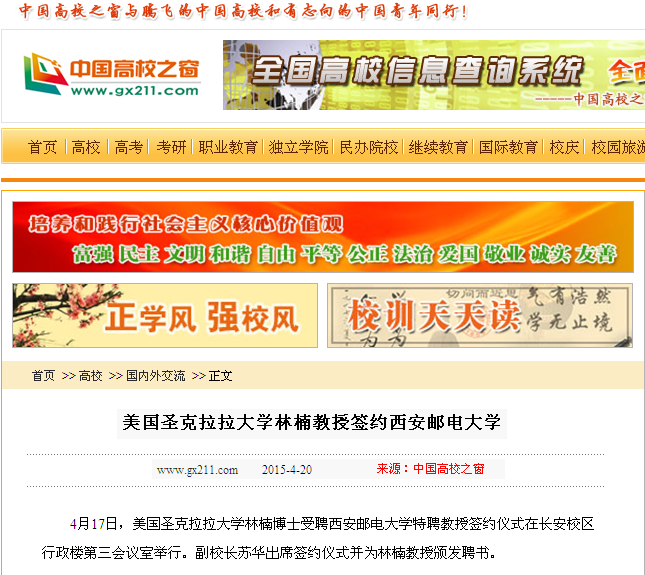 美国圣克拉拉大学林楠教授签约37000v威尼斯