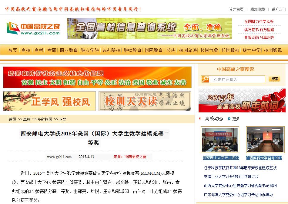 本次比赛,学校领导高度重视,教务处积极协调,密切配合,指导教师精心组织,认真培训,参赛同学坚持不懈,通力合作,为学校赢得了荣誉。通过本次大赛,不仅拓宽了学生的视野,提高了学生的数学建模及英文书写表达能力,更为建设有特色高水平邮电大学贡献了力量。