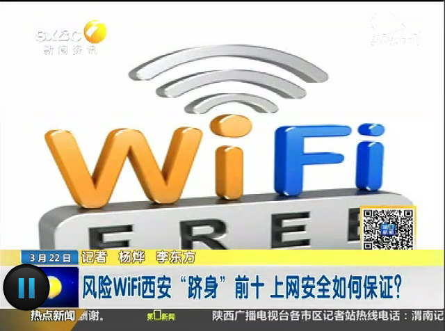2015年3月22日,陕西电视台《第一新闻》栏目报道威尼斯教师吴昊风险WIFI西安跻身前十,上网安全如何保证。