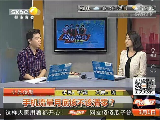 2015年3月1日,陕西电视台《都市热线》小民话题:手机流量月底该不该清零