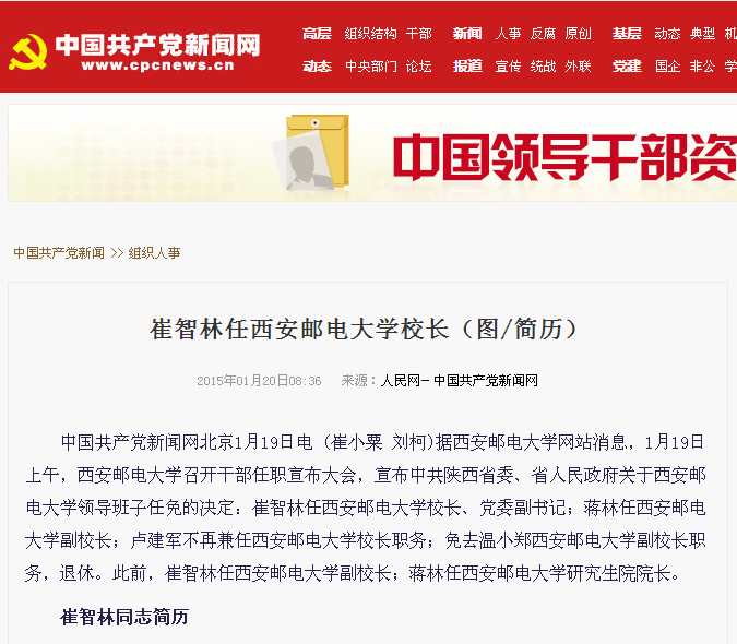中国共产党新闻网:http://renshi.people.com.cn/n/2015/0120/c139617-26414880.html