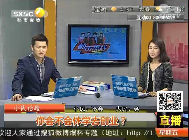 2014年12月12日18:40 陕西二套《都市热线》:小民话题 你会不会休学去创业?