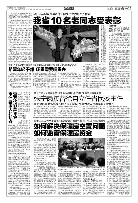 袁武振说,当前,中国已进入老龄社会,要调动各方面积极性共同实现中国梦。在这种情况下,尊重、爱护、学习老同志,发挥他们的光和热,对弘扬党的优良作风和中华民族尊老爱老的传统美德,具有十分重要的现实意义。对建设社会主义新风尚、深化改革、全面建设小康社会也具有重要意义。 本组稿件由华商报记者 陈琳 采写