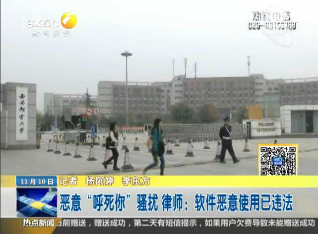 2014年11月10日陕西电视台《第一新闻》:西安女孩遭遇“呼死你”骚扰 对方:给200就解除