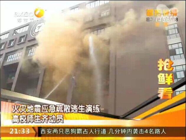 2014年11月8日,陕西电视台《都市快报》:火灾地震应急疏散逃生演练 高校师生齐动员
