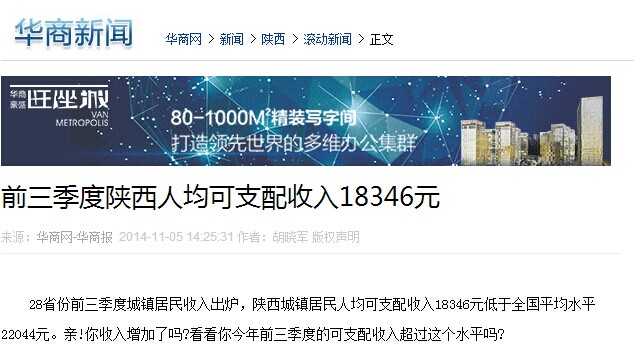 面对18346元的城镇居民人均可支配收入,普通老百姓有话要说,“西安商品房均价每平米7000元,三个季度赚的钱仅仅够买两平米多,如果再加上吃喝住行等日常开支,最多能购买一平米房子。如果这样算下来,要在西安买一套90平米的房子,需要五六十年啊!”看到这个数据市民小李忙吐槽。